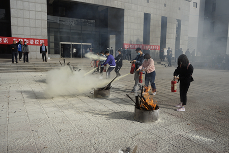 2020年11月7日上午,成人漫画 保卫科结合“全国消防日”组织开展了消防知识讲座暨疏散逃生及灭火实操演练活动。建华校区10个学院200余名师生共同参与活动。