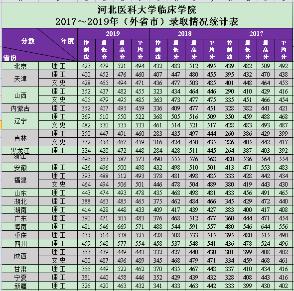 成人漫画 2017-2019年各专业控制线、投档线、录取线统计表(外省市)