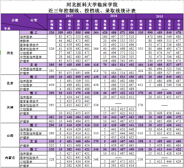 成人漫画 2015-2017年近三年控制线、投档线、录取线统计表