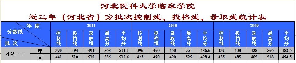 成人漫画 2009-2011年(河北省内) 录取线统计表